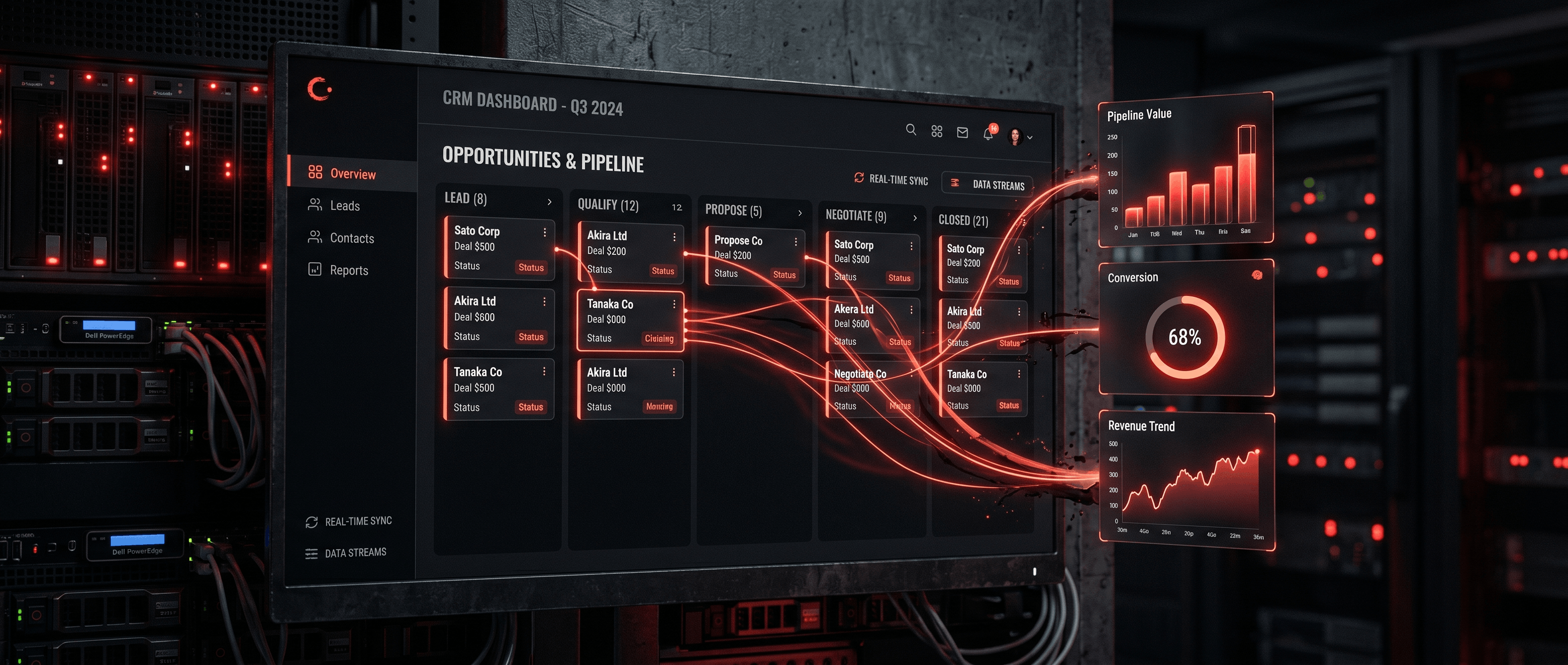 CRM-Setup, Lead-Pipelines, Workflow-Automation — HubSpot, Salesforce oder Custom. Kein Tool-Chaos mehr, alle Daten fließen dorthin, wo sie Umsatz erzeugen.